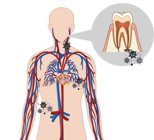 ここまでの話では、根尖性歯周炎は口腔内だけの問題のように思われるかもしれません。
